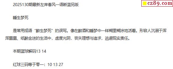> 25年福彩双色球130期 左岸春风一语断蓝另版